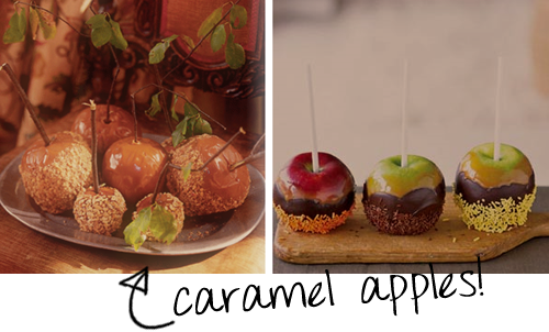 A table full of handmade caramel apples would be so unique and ideal for fall.  They'd also make lovely favors for guests to take home.  (source left; source right)